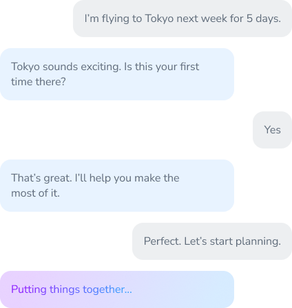 It understands your trip, answers your questions, and helps you prepare — instantly. No switching apps. No endless searching. Just clear answers when you need them.